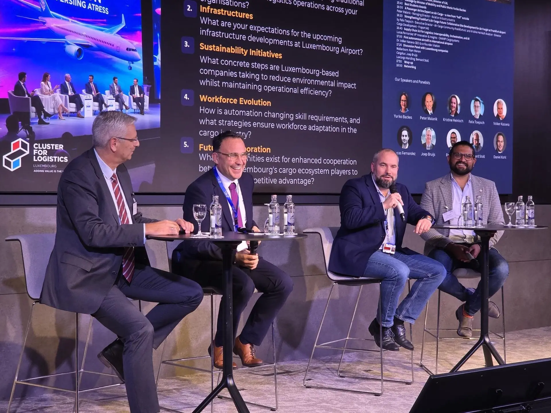 The conference concluded with a panel discussion featuring three key figures from Luxembourg’s air cargo ecosystem: Bernard Stoll (CEO, Luxcargo Handling), Ram Menon (COO, Wallenborn), and Joep Bruijs (SVP Global Logistics, Cargolux). The panelists discussed the impact of digital transformation, infrastructure sustainability, workforce evolution, and the importance of future collaboration across the industry.