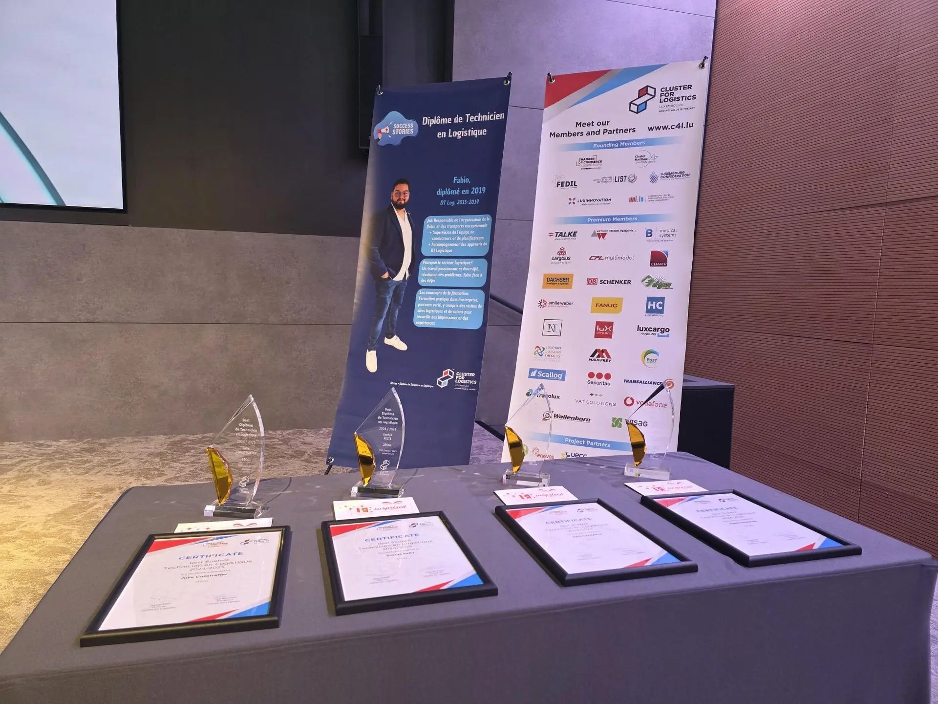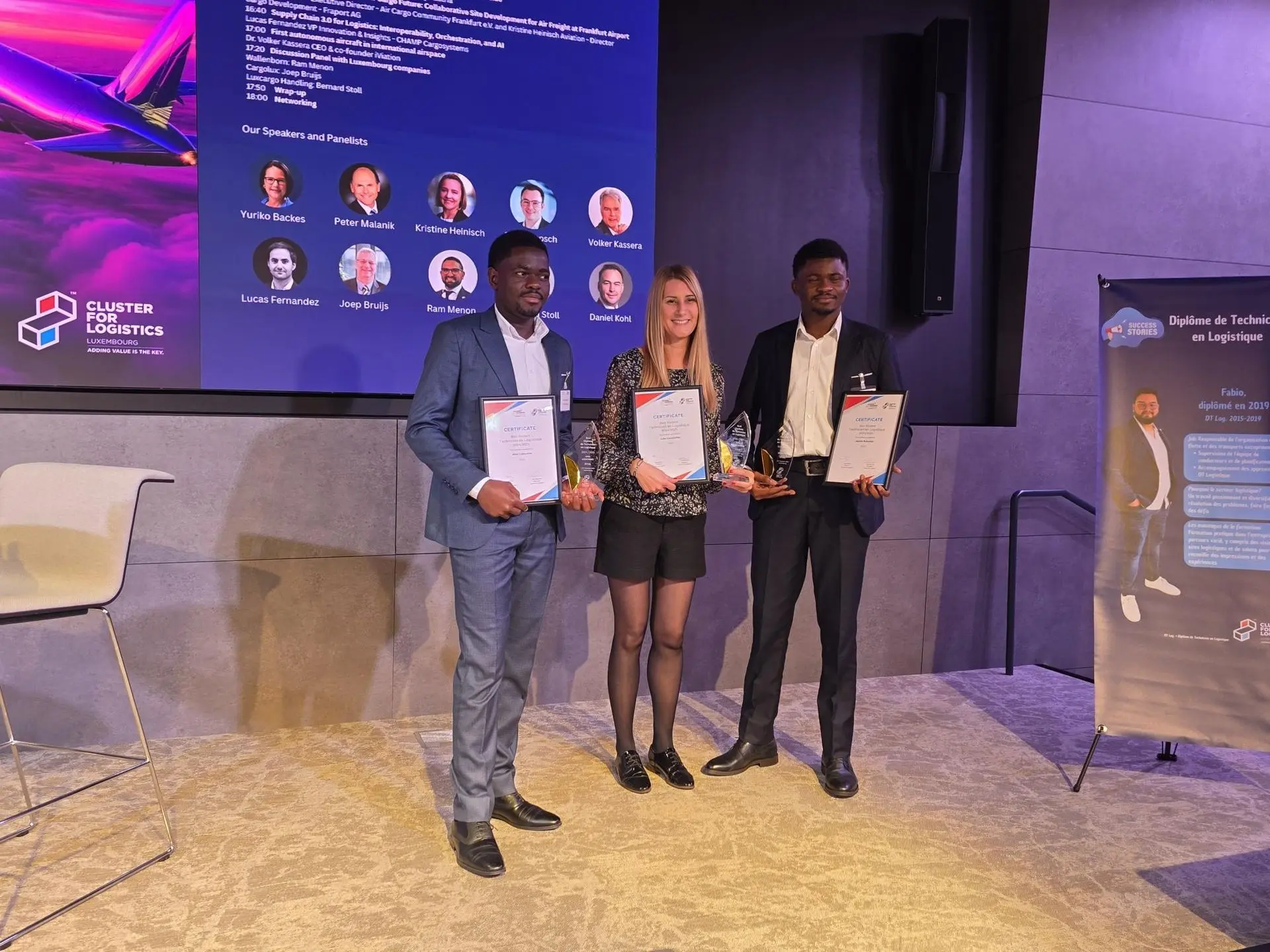 As part of the event, the Cluster also presented awards to the top students of the Diplôme de Technicien en Logistique for the academic year 2024/2025. This year’s recipients - Julie Constroffer (1TCGL), Svenja Feltz (2TCGL), Jephte Mukanda (3TCGL), and John Luzayamo (3TCGL) - were recognised for their outstanding performance and received a gift voucher in acknowledgment of their achievement.