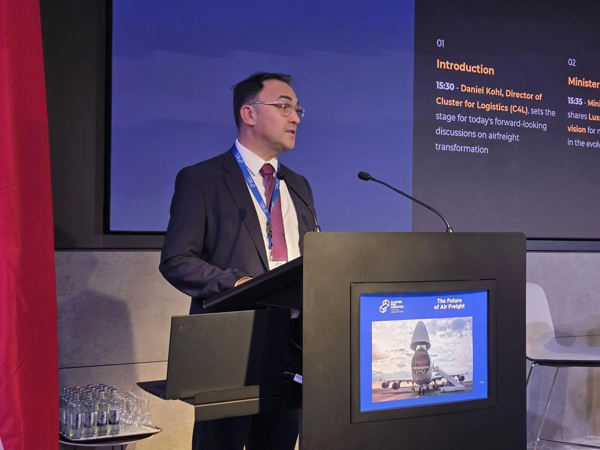 The Cluster for Logistics Luxembourg extends its gratitude to Yuriko Backes, Minister of Mobility and Public Works, for her message broadcasted to the audience. In her address, the Minister reaffirmed her commitment to the continued development and strategic importance of Luxembourg Airport.