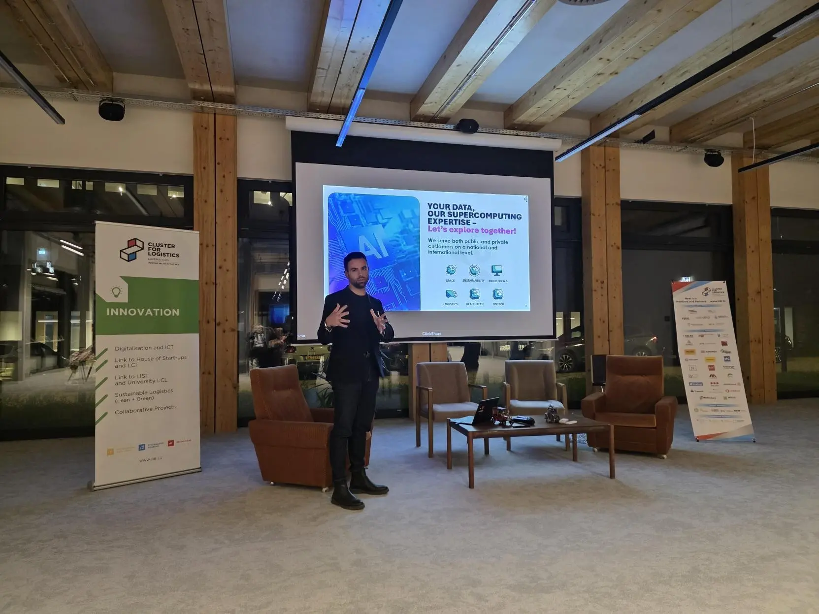 - 🗣️ Daniel Kohl, Director of Cluster for Logistics, emphasized collaboration and innovation, while extending heartfelt thanks to Luxconnect, LuxProvide, Corp Pearls, Synara Technologies GmbH, and to all members for making this event possible.