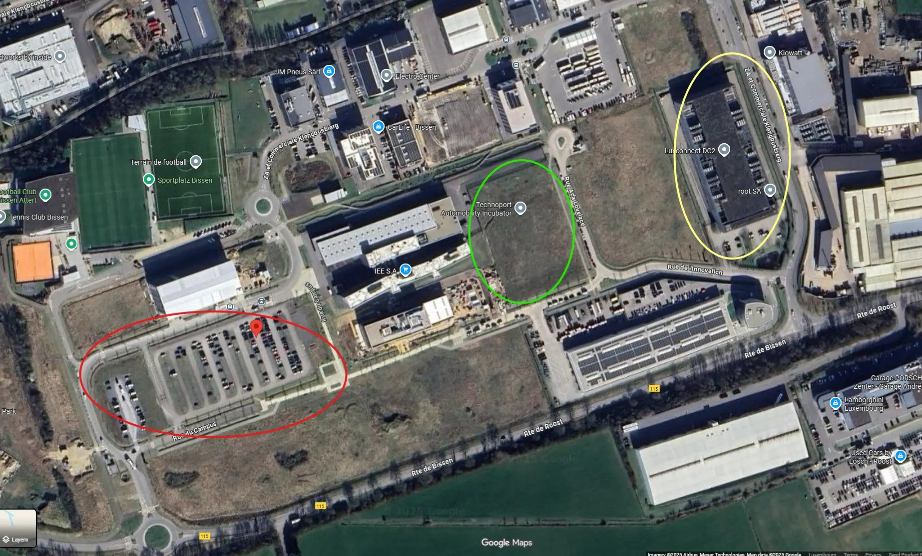 The first part of the event takes place at LuxConnect DC2 (yellow circle)